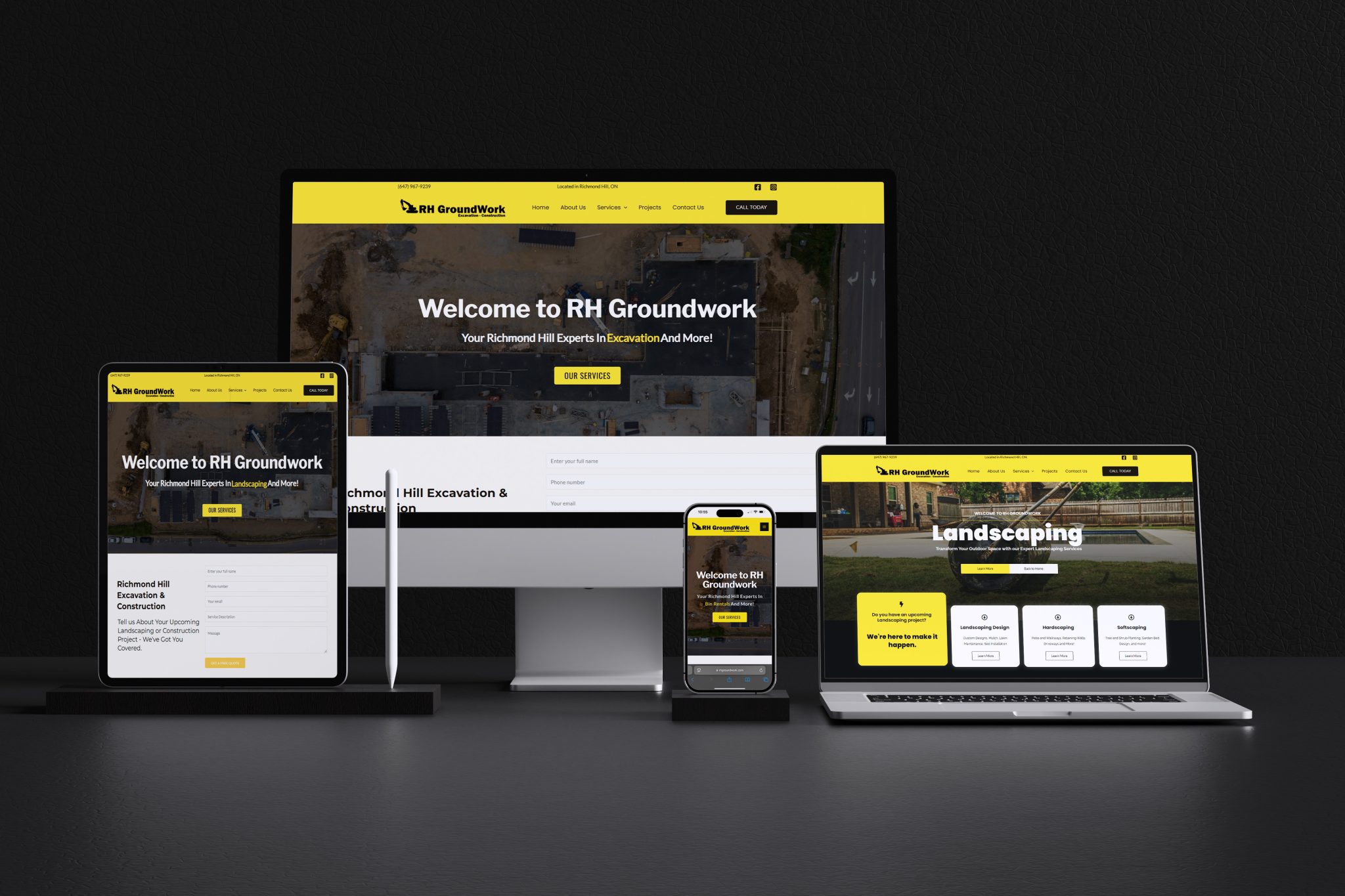 The final result is a modern, high-performing website that positions RH GroundWork as a credible, professional contractor in Richmond Hill and the surrounding areas. The refreshed branding and custom design give the company a stronger digital presence, while the improved structure and messaging make it easier for potential clients to understand services and request quotes.