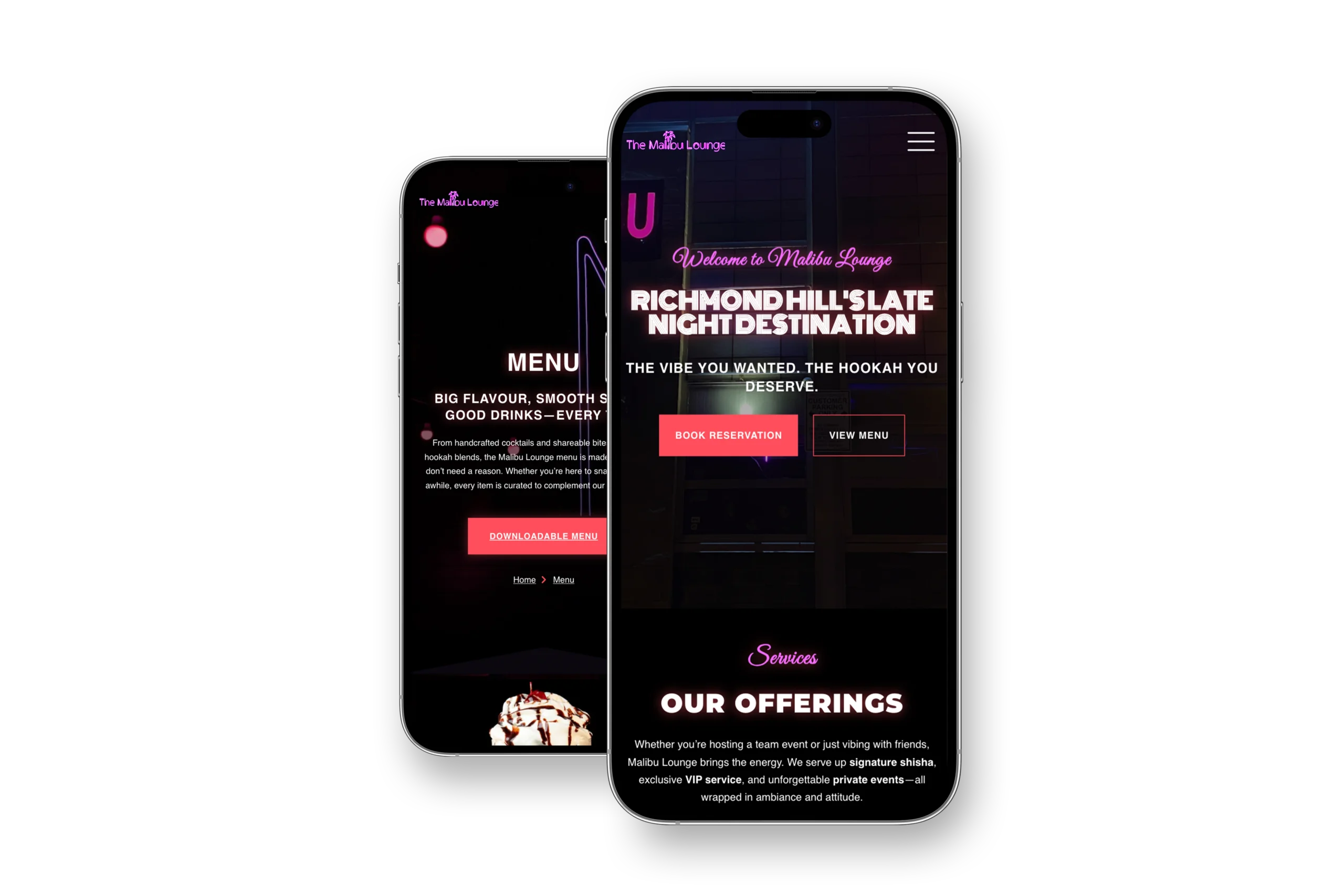 Malibu Lounge is a Richmond Hill–based shisha bar and restaurant. The project involved building a brand-new website from the ground up to establish their online presence and reflect their unique brand identity.